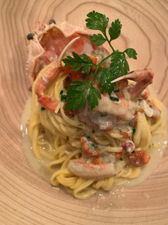 今年も11/7カニ漁解禁より大人気の香箱ガニ(ズワイガニのメス)を丸ごと一杯分使った香箱ガニの軽いクリームソースパスタを始めます